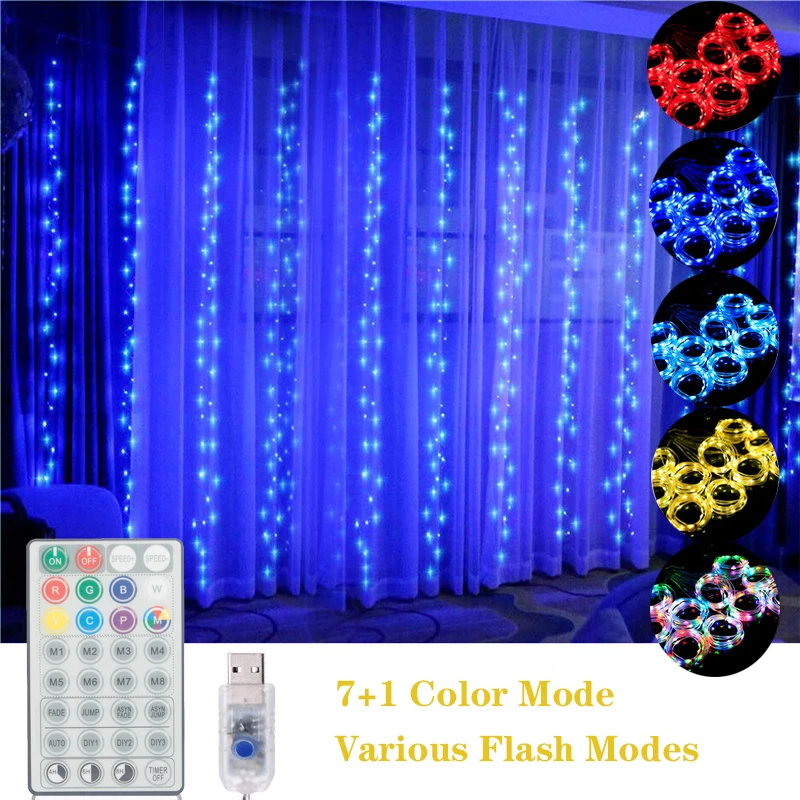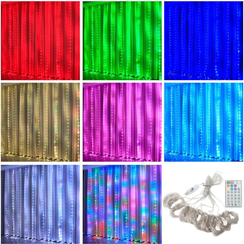 لون الستار LED جارلاند ضوء سلسلة الجنية أضواء USB عن بعد LED الزفاف عيد الميلاد دالكوني أضواء الديكور