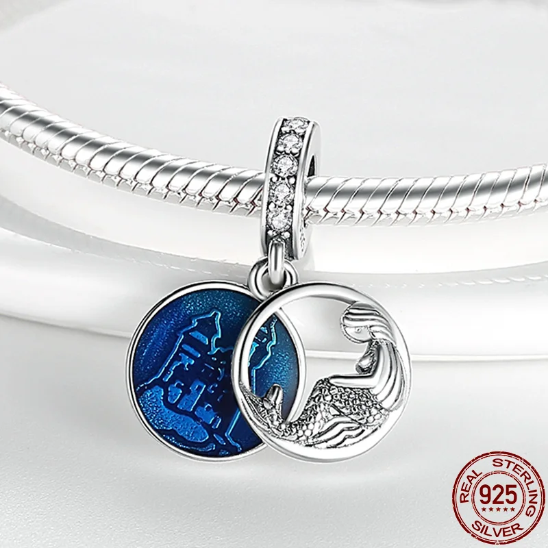 Hot Sale Authentic 925 Sterling Silver 14 Style Blue Ocean Heart Beads Fit Original 3mm Bracelet DIY Jewelry
