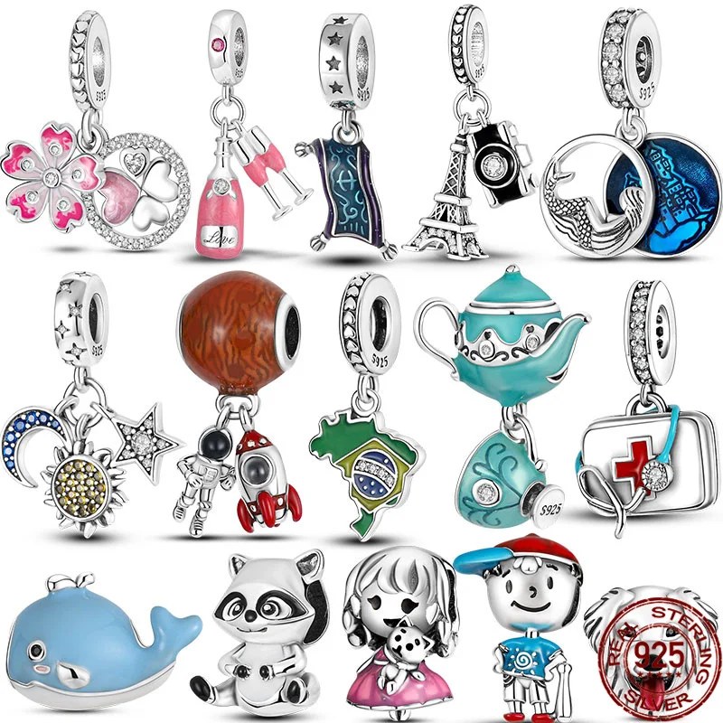 Hot البيع أصيلة 925 فضة Airman و القمر نجوم الخرزة صالح الأصلي باندورا أساور حلية استرخى DIY بها بنفسك مجوهرات